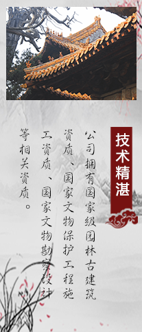 堅持質(zhì)量為先,信譽(yù)為重,管理為本,服務(wù)為誠的理念。本著對社會、對建設(shè)單位負(fù)責(zé)的原則,將工程質(zhì)量、安全生產(chǎn)放在工作的重要位置。我們堅持發(fā)展古建藝術(shù),弘揚民族文化,作為企業(yè)的經(jīng)營管理理念。曲阜古建筑義德古建始終秉承“科學(xué)管理,創(chuàng)精品工程,打造古建筑行業(yè)標(biāo)準(zhǔn)”的方針,追求更高質(zhì)量,為文物保護(hù)、傳統(tǒng)建筑事業(yè)做出貢獻(xiàn)。